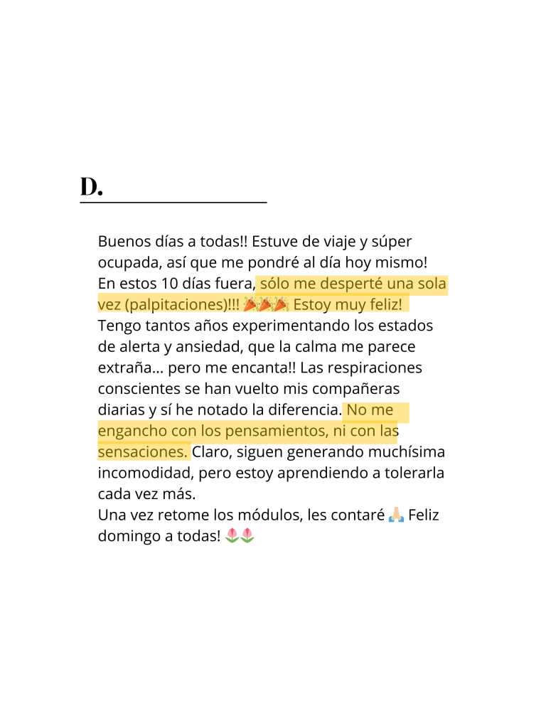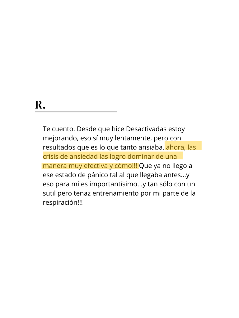✔️ Cuando aparece la ansiedad sabes exactamente qué hacer para calmar tu cuerpo. Ya no dependes de la suerte ni de cuánto dure: tienes un plan y notas cómo la calma vuelve un poco antes cada vez.