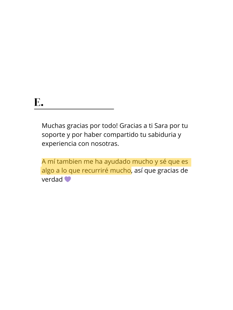 ✔️ Un espacio para aclarar qué es parte del proceso y qué no —para que no tengas que quedarte sola con el “¿esto es normal?” o el “¿voy mal?”.