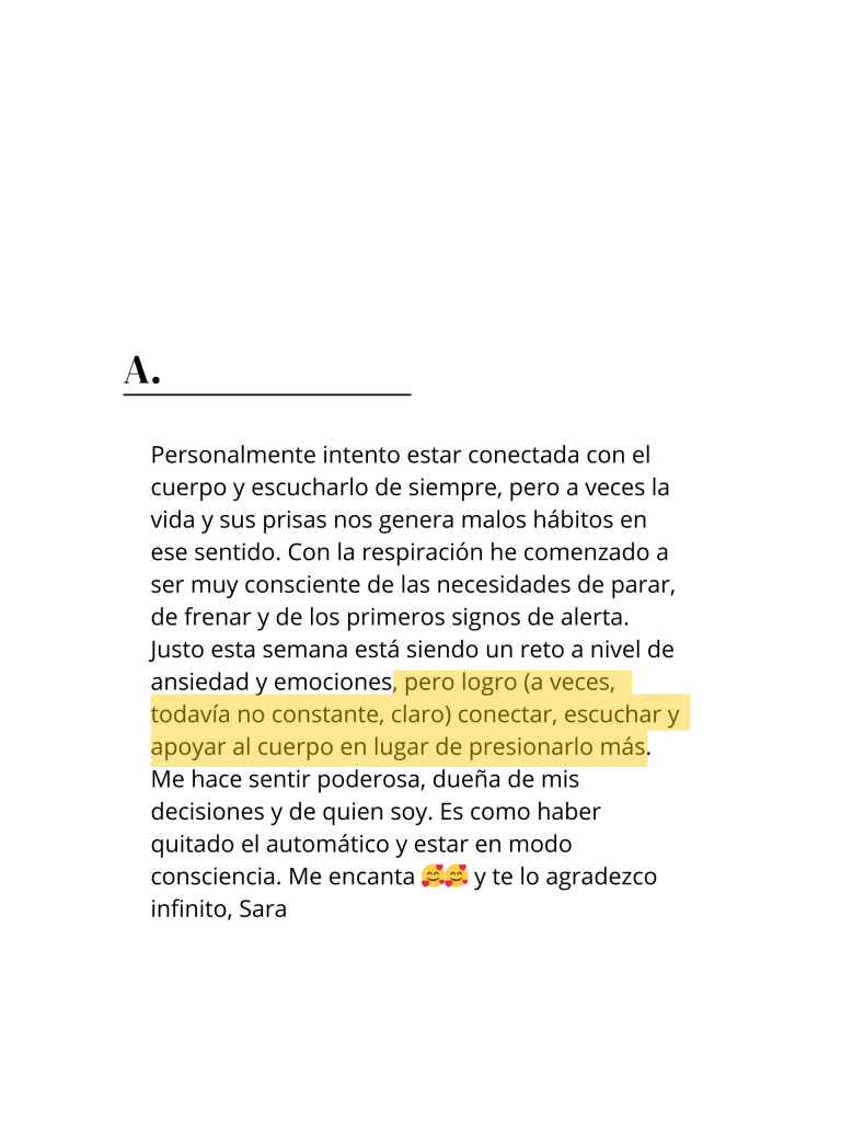 ✔️ Empiezas a sentir que tu cuerpo es tu aliado. Lo que antes te asustaba ahora se convierte en señal de que sabes qué hacer para recuperar el equilibrio.