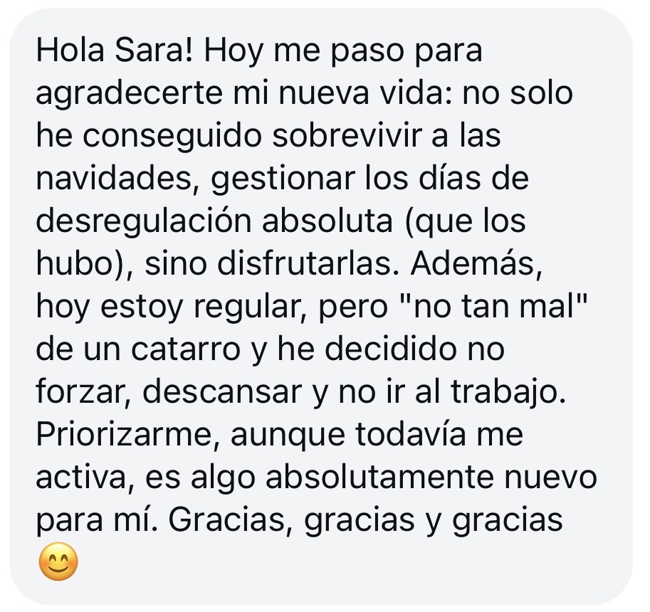✔️ Vives con más calma porque tu cuerpo ha aprendido a dejar de interpretar peligro constante. Dejas de estar pendiente del “después” y vuelves a disfrutar del presente, sin tener que forzarte a creer que estás bien.